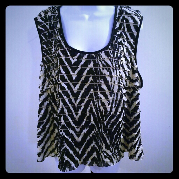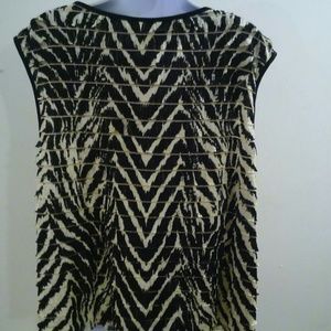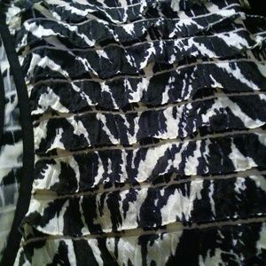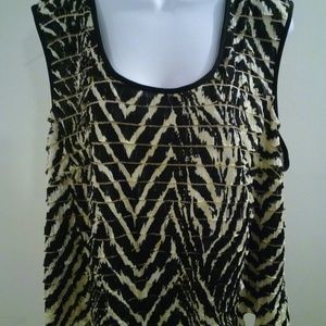 Zebra print Black, Blush and Cream shell or blouse is sleeveless with ruffles. EUC