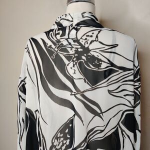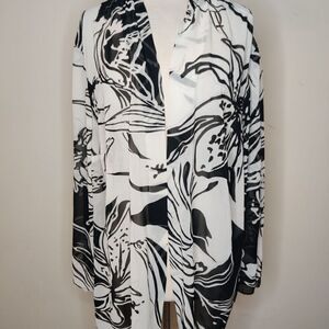 K Woman floral chiffon shimmery open front blouse. Size 24W. Polyester. (12244)