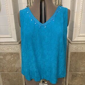 Most items are hand selected by me but pre-owned items may be gently loved.  We sell for other clients who have various preferences with regard to accepting offers.  I have a master's degree in clothing and textiles, so be assured that all items are held to a very high standard.  Used items may have minimal pills or pulls.  My prices are based upon condition and what I've had to pay for quality items.  Use my photos as my main description source.  If measurements are given, they are approximate.  More available upon request.   Bust measurements are taken armpit to armpit laying flat X two. Sleeve length is taken from shoulder unless noted.  Center back from neck seam.  Rise from waist band seam.   Please check measurements carefully with regard to your preferred ease and ask all questions before purchasing as I do not accept returns.  It is normal for beaded items to be missing  beads.  (I managed a department store in the 1980's.)   I love finding my items for you from high end consignment boutiques because I know they have already passed one inspection.  Please check my other listings for more in this size. Pet and smoke free home.  Kindly add me to your list of favorite sellers.