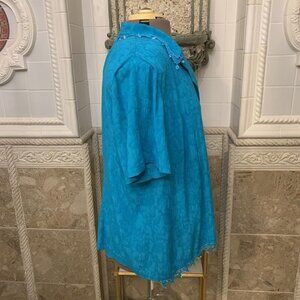 K Woman.  Sz 16W.  Rayon 2 piece Set w/ Crochet Lace Edging.  Short Sleeve.  Center back 25".  Sleeve 10.2".  Bust 43".  Excellent pre-loved condition.  No spots, tears or damage.