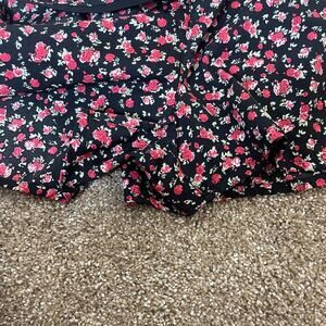 K Woman skirt/skort black floral print elastic waist pink roses SZ 4/6 short