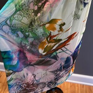 K studio sheer lined soft floral pleated beaded neckband halter midi. Invisible back zipper. Size 6. 100% polyester. Excellent condition. Nonsmoking home.