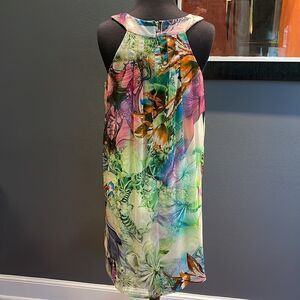 K studio sheer lined soft floral pleated beaded neckband halter midi. Size 6.