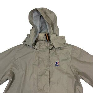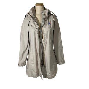 K way jacket women's S tan cream beige long hooded zip front lightweight