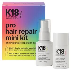 Powered by the reparative K18PEPTIDE™, the K18REPAIR™ service (K18 PRO mist + PRO mask) strengthens and fortifies hair before and reverses damage after salon services. Giving you the confidence to push transformations further on stronger, healthier hair.