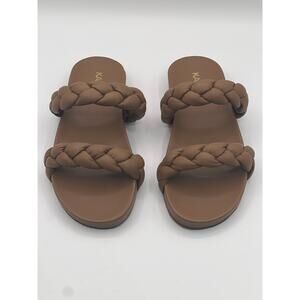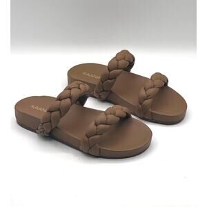 KAANAS Coco Brown Chunky Leather Braided Pool Slides Womens Size 6M NEW!