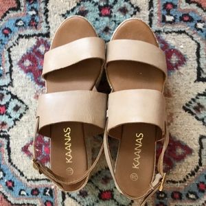 SUPER CUTE π worn twice. Super trendy platform sandals! KAANAS brand, size 8 (runs narrow). Montpellier style, in Latte.