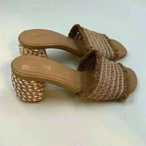 KAANAS Sumatra Frayed Upper Heel in Natural Woven synthetic upper with man made sole. Please see photos for item detail and condition.
