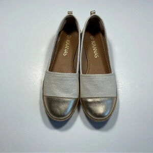KAANAS Women's Espadrilles Sz 10 Marseille Cap Toe Two Toned Gold Jute Leather