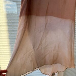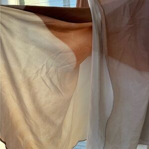 Colors are Ombre of. Rust brown and cream tones. Very thin material. A few small snags. Price reflects wear.