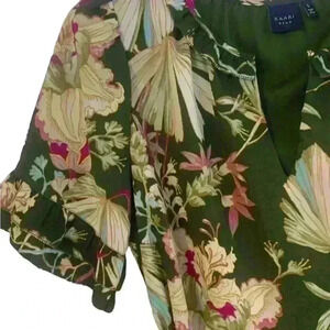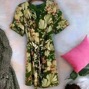 Beautiful dress with ruffles sleeve with B Neck. This dress has a belt 100 % polyester with underlying slip. So pretty and comfortable!