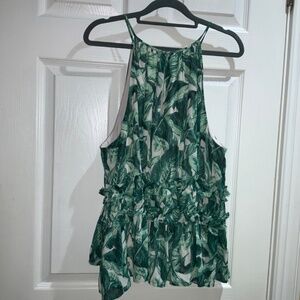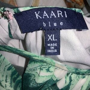 KAARI BLUE halter neckline Sleeveless botanical Blouse Sz XL ruffle hem
