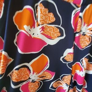 KAARI Blue Tropical Floral Pink Orange wide leg comfy lounge pants 1X plus