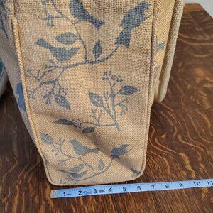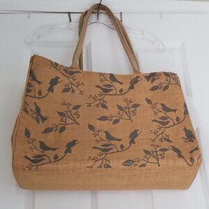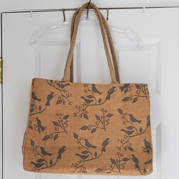 pretty & practical jute tote featuring a beautiful bird print. perfect for when you're on the go, this durable carryall is spacious enough to hold everything from your weekly grocery haul to fresh blooms. bonus: keep smaller possessions safe in the hidden interior zip pocket!