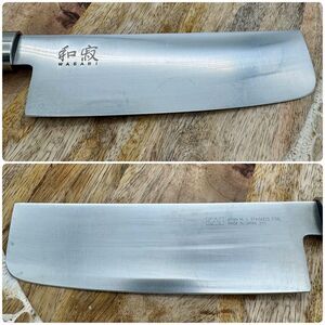 -pre owned expect knives to show some use including scratching of the blades from sharpening. Please see pictures