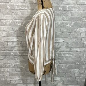 KAII striped button down top Open back with tie Vneck Nonfunctional front buttons Elastic Cuffs