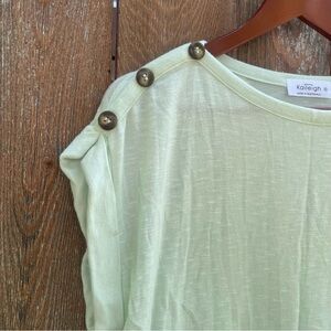 KAILEIGH Women’s Mercy Light Mint Green Crew Neck Cap Sleeve Buttons Size Small