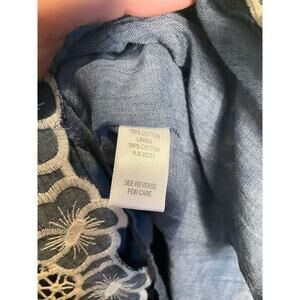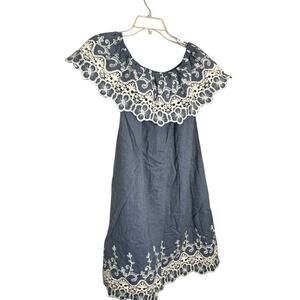 KAKTUS 2 Way Shift Dress Floral Embroidered Cotton Denim/Off White Size L NWT