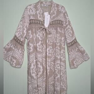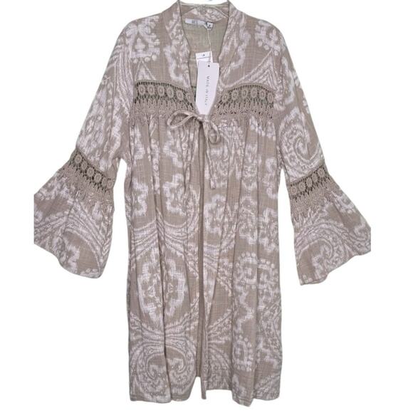 KAKTUS Beige 100% Cotton Cardigan Duster Top One Tie Made in Italy Medium