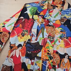 KAKTUS Jean Jacket Women XL Colorful Art To Wear Stretch Cotton