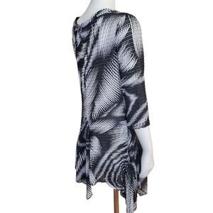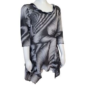 KAKTUS Tunic Size Large Asymmetric Handkerchief Hem black/white Top Mesh Scoop