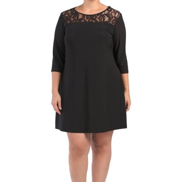 KAKTUS Women's Plus Size 2X BLACK DRESS WITH LACE TOP NWT