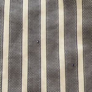 Kal Rieman Stripe Button Front Shirt in a bluish gray color with white stripes. Features button front placket, & notched collar. 100% cotton poplin made in the USA with imported fabric. Classic wardrobe piece. In good preloved condition with minimal normal wear. It does have an area on the front right side with tiny pin sized pricks to the fabric but it is not noticeable when worn (see pic 6). Size small. Approximate measurements lying flat: 19.5” from pit to pit & 26” from shoulder to hem. Bundle to maximize shipping!