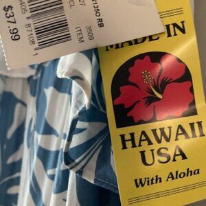 KALAHEO- ALOHA HAWAIIAN DRESS WITH LOVELY SOFT BLUE AND WHITE MONSTERA, LILLIES, JASMINE PUA'S (FLOWERS), MADE IN HAWAII, NEW WITH TAGS, SIZE LARGE