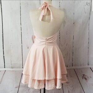 New with tags designer dress in color Blush. Perfect for homecoming or any special occasion. Ties in the back and has a layered skirt.