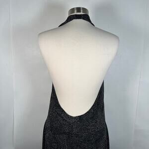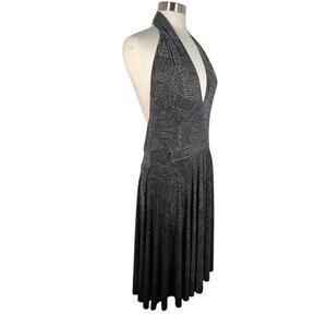 Kamalikuture Norma Cross Halter Flared Dress L Gray Sleeveless Slinky Stretch
