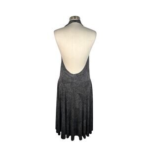 KAMALIKULTURE Norma Cross Halter Flared Dress L Gray Sleeveless Slinky Stretch