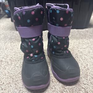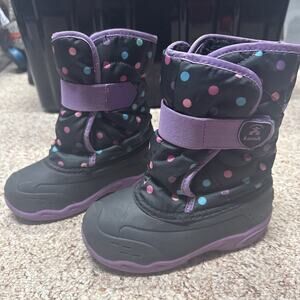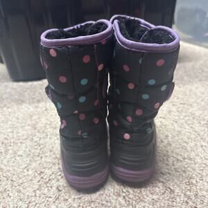 KAMIK Little Girl SNOWBUG 13 WINTER BOOT BLACK/PURPLE Polka Dot Waterproof