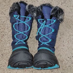 excellent condition! worn once. navy blue shaft trimmed in turquoise, BOA bungee lacing system, faux fur lined, rubber bottom. very warm!