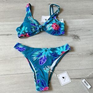 KAMONI FLORAL PRINT BOWKNOT FRONT BACK HOOK MID WAIST BIKINI S NWT IN PKG