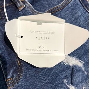 NWT KanCan skinnies in distressed blue wash. Mid-rise stretch denim hugs curves with casual-cool edge.