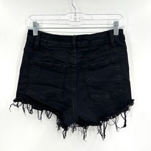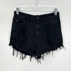 KANCAN Black High Rise Distressed Raw Hem Festival Denim Short Shorts Size 28