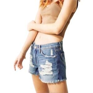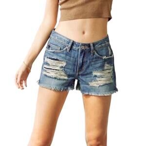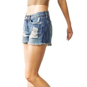 KANCAN Denim Short Women Sz 23 Blue Mid Rise Distressed Gorpcore Grunge Boho NWT