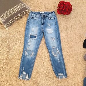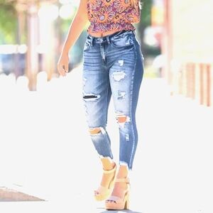 KANCAN Distressed Estilo Kurvy Mid-Rise Ankle Skinny Jeans Size 27 🔥