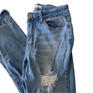 KANCAN Distressed High Rise Skinny Jeans Frayed Cuffed Ankle