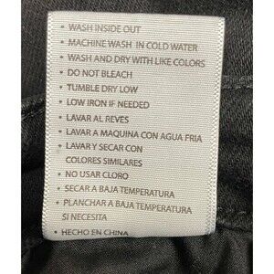 Heavy distressing on the legs. Raw hem. Rich black color.
