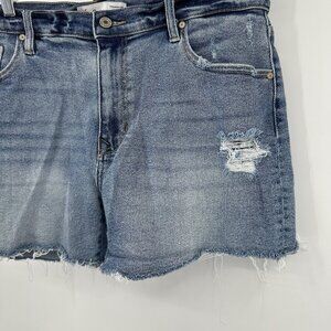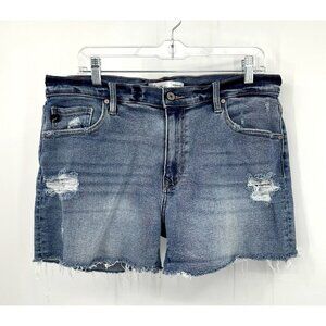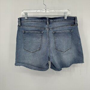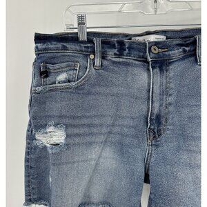KANCAN JEANS SHORTS jorts distressed mid rise medium blue stretch cutoffs 30