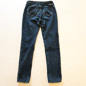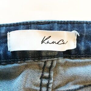 Kancan Midrise Super Skinny jeans. Dark wash, button closure, 5 pocket, size 28, cotton polyester rayon spandex blend, cotton polyester rayon spandex blend, some puckering on back, wear between legs-see photos. Smoke and pet free home.