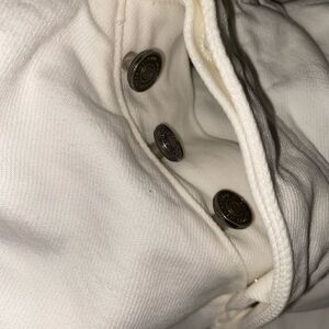 These white ultra high rise 90s flare jeans offer a trendy and vintage-inspired look, teaturing a flattering ultra-high rise waistline, 90s flare leg, and distressed detailing. Made from a rigid fabric blend with a touch of stretch, these jeans provide both structure and comfort. The hidden button fly adds a minimalist touch, while the regular hem makes them a versatile option for any occasion. Perfect for a stylish and comfortable everyday look.