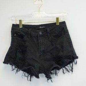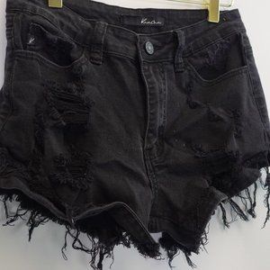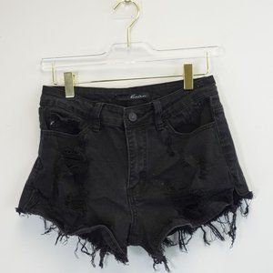 KANCAN Women's Cotton Black Jean Shorts 27 Party Raw Ripped Hem Distressed Denim