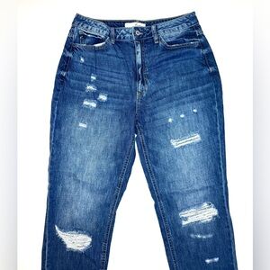 KANCAN Women’s Hi Rise Mom Jeans Ripped Distressed High Waisted Size- 9/28