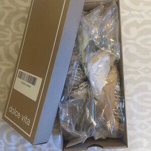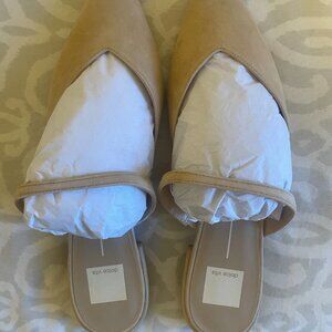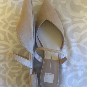 NEVER WORN, BRAND NEW IN BOX. Suede pointy toe flat. The V-cut vamp perfectly complements the pointy silhouette of Dolce Vita® Kanika Low Sandals. The slip-on footwear features a suede upper construction with breathable leather lining and stacked heels for a comfortable uplift. This is a size 10 WIDE shoe.