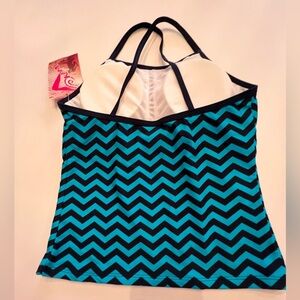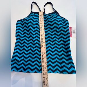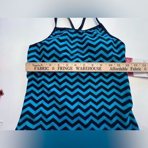 KANU GIRLS SIZE 14 BLUE/NAVY CHEVRON PATTERN PADDED TANKINI. CRISS CROSS NWT