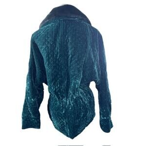 "KAOS" Green Vintage Y2K Velvet Coat Made In USA Faux Fur Collar SZ S PLZ READ