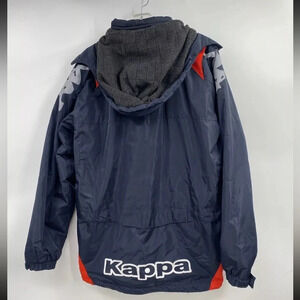 KAPPA Mens Fleece Insulated Parka Jacket Sz M Red/Blue Hooded Y2K Vtg
