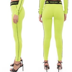 Kappa X Shadow Hill Collab Sanke Leggings in Acid Lime Green/Yellow. New with tags. Size Extra small, small, and medium. High rise. Piping on the sides. Spell out waistband.